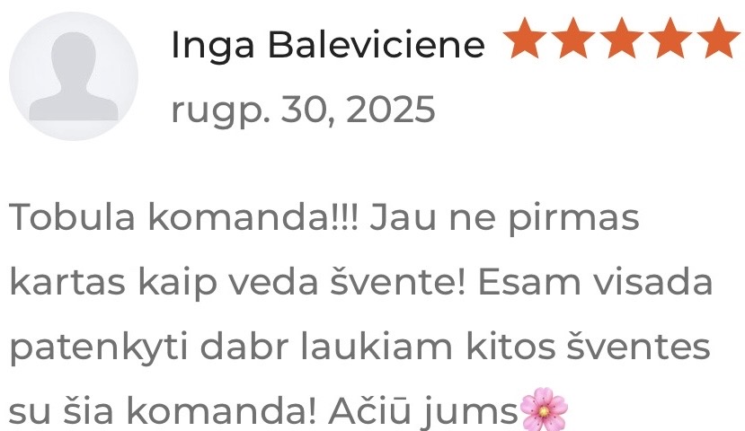 Kruopštus šventės eigos planavimas ir techninių detalių priežiūra, leidžianti jums mėgautis kiekviena akimirka be jokių rūpesčių