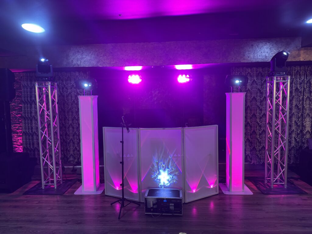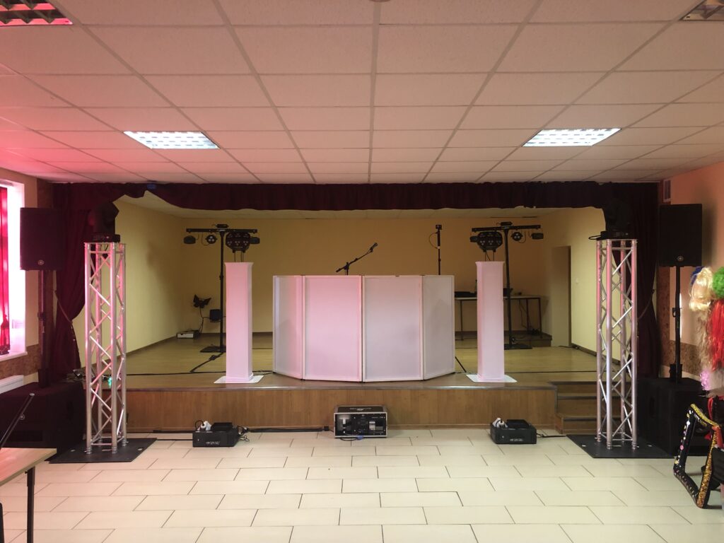 - Apšvietimas: ADJ Focus Spot 4Z judančios galvos, Chauvet Wash FX Hex, Chauvet Obsession HP ir pilnas salės sienų apšvietimas